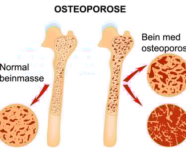 Osteoporosis is a medical condition that occurs when bone density decreases and their structure changes, leading to increased fragility and a higher risk of fractures. It most commonly affects older individuals, especially women after menopause, but it can impact people of all ages.