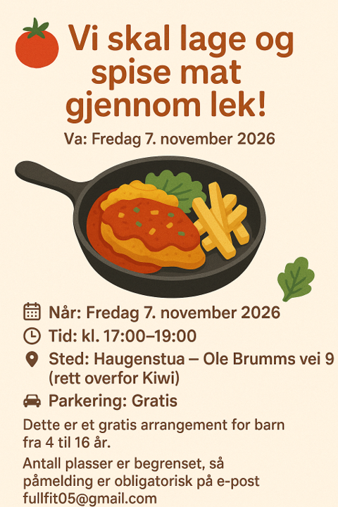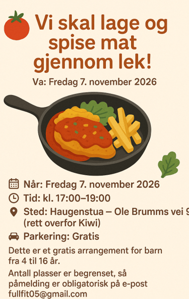 Barna får lære om matlaging på en morsom måte, møte nye venner – og vi har også en liten gave til alle barna som deltar! 🎁