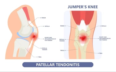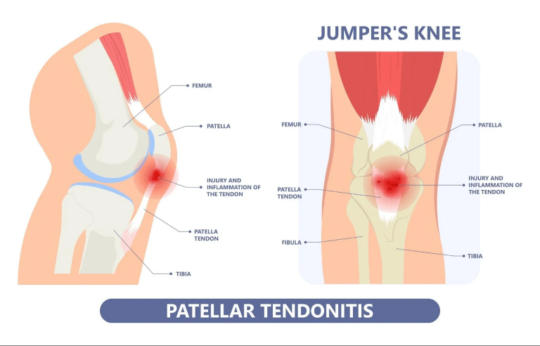 Jumpers Knee (Patellar Tendinopati): Dette er en tilstand som ofte rammer idrettsutøvere som utfører mye hopping eller rask akselerasjon, som basketballspillere og løpere. Jumpers knee er en betennelse eller irritasjon i patellasenen, som fester patella (kneskålen) til skinnebenet. Denne tilstanden gir ofte smerte rett under kneskålen, spesielt ved hopp eller når man står oppreist etter å ha sittet i lengre tid.