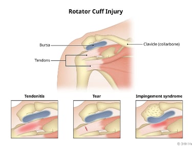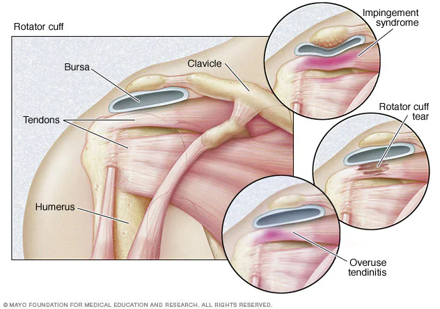 Rotatorna manžetna je grupa mišića i tetiva koji drže rameni zglob na mestu. Oštećenje rotatorne manžetne, kao što je suza ili upala, može izazvati bol, slabost i smanjenu pokretljivost ramena. Ovo se često javlja kao rezultat preopterećenja ili starenja.